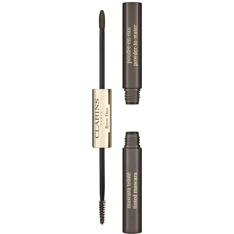 Clarins Brow Duo – 05 Dark Brown er et innovativt og dobbelt brynprodukt, der passer til alle kvinder, som ønsker perfekte og fyldige bryn. I den ene ende af pennen er der en meget fin pudder-formel, som transformeres når den bliver påført med applikatoren, hvilket sikrer at det bliver siddende hele dagen. I den anden ende er der en cremet formel, som skal påføres med en strid børste, der gør det muligt at fiksere hårene i den ønskede form, samt intensivere brynets farve og facon. Med denne smarte pen er det ingen hindring at få smukke, definerede og fyldige bryn.