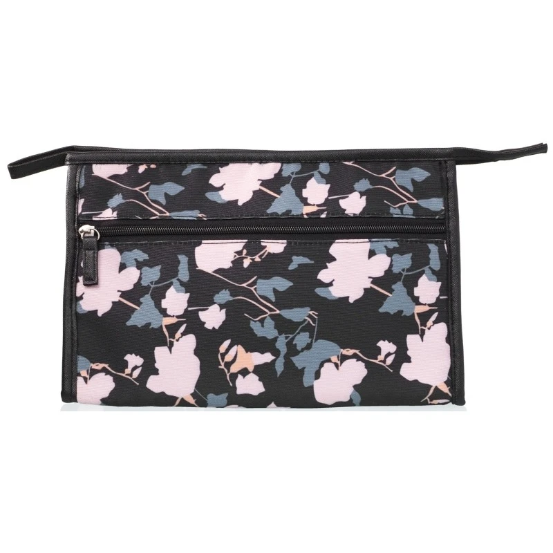 Gillian Jones Cosmetics Bag Set – Flower er en sampak med en toilettaske og en makeup pung, der med sine to størrelser gør, at man har opbevaring til sine toiletsager til ethvert formål. Både tasken og pungen har ét stort rum, der åbnes med en lynlås. Toiletasket har to små lommer og en lomme med lynlås, som er perfekt til opbevaring af mindre genstande. Makeuppungen har et indbygget spejl, som er placeret i åbningen.