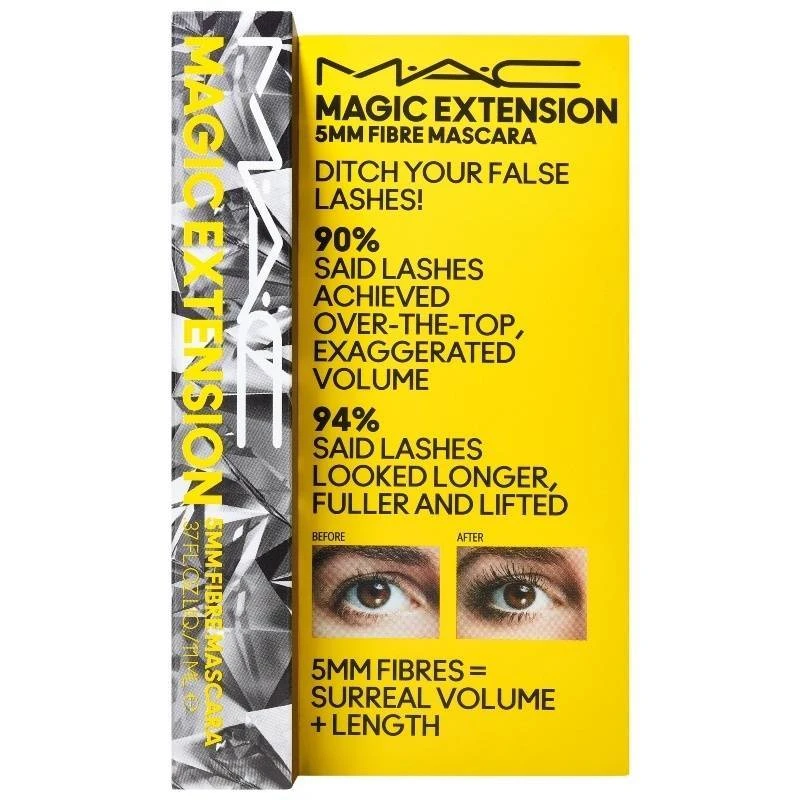 MAC Magic Extension 5mm Fibre Mascara – Extensive Black er en helt fantastisk mascara, som giver de smukkeste, ekstravagante vipper, der til forveksling kunne ligne falske vipper! Denne mascara består af ekstremt lange 5 mm fibre, som tilfører ekstra volumen og længde til vipperne dagen lang. Ikke nok med det, består mascaraens børste af en 5G-børste, som fanger og krøller selv de mindste øjenvippehår fra rod til spids.