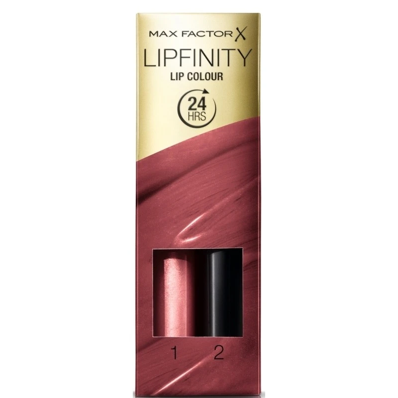 Max Factor Lipfinity Lip Colour 24 Hrs – 108 Frivolous er et genialt 2 trins system, der giver dig smukke og forførende læber, som holder i op til 24 timer. Sættet indeholder en lipgloss samt en fugtgivende top-coat. Du kan vælge imellem et væld af smukke farver, så hvad enten du er til et naturligt look eller ønsker mere fokus på dine læber, er der en farve der passer til netop dig.