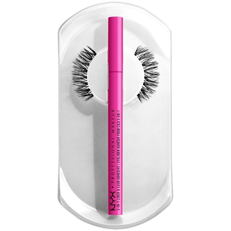 NYX Prof. Makeup Jumbo Lash! Longwear False Lash System Fringe Glam Kit er det helt perfekte kit til at opnå et blikfangende og dragende vippelook. Dette kit består af ét sæt smukke vipper, og en 2-i-1 eyeliner, der fungerer som både en vippelim og eyeliner.